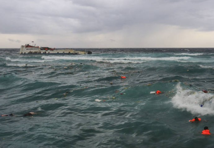 Televizijske snimke koje su emitirane u utorak pokazale su desetke putnika kako vise na brodu koji tone ili skaču u vodu s pojasevima za spašavanje.