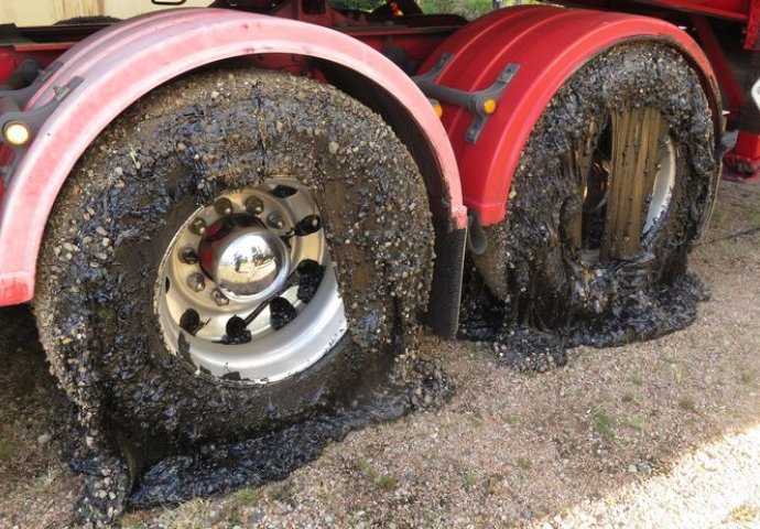 Katran je uzrokovao velike štete na gumama i branicima, a cesta je na neko vrijeme zatvorena.