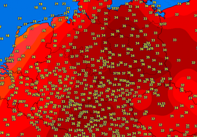 Temperature na nadmorskoj visini od oko 1500 metara kretaće se od 30 do 31 stepeni, ali će te vrijednosti porasti krajem nedjelje. Od petka do nedjelje se očekuje da će maksimalne popodnevne temperature dosezati vrijednosti od 25 do 50 stepeni u Španiji i Portugaliji.Ekstremni toplotni talas bi mogao da donese temperature od 50 stepeni.