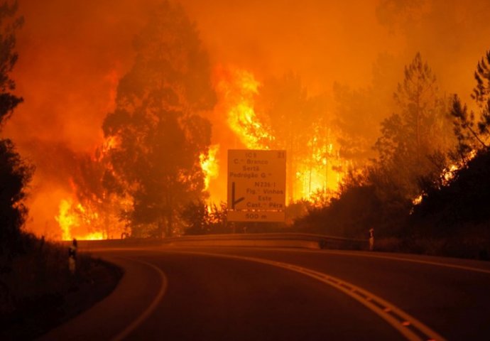 Požar potaknut vatrom širio se borovom šumom i poljima eukaliptusa u uglavnom nepristupačnom planinskom lancu iznad čuvenih plaža portugalske turističke regije Algavre.