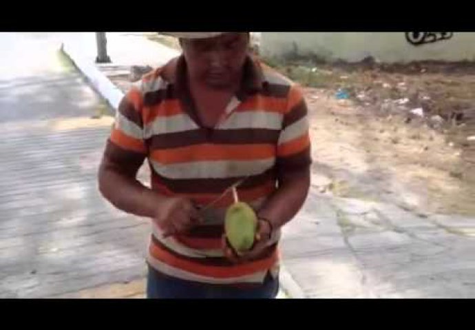 Ovaj čovjek je uzeo mango i od njega napravio nešto genijalno! Iako kod nas ovo voće nije toliko popularno, istu tehniku možete da primjenite i vi ako želite nekoga da oduševite fantastično posluženom breskvom, jabukom, dinjom...