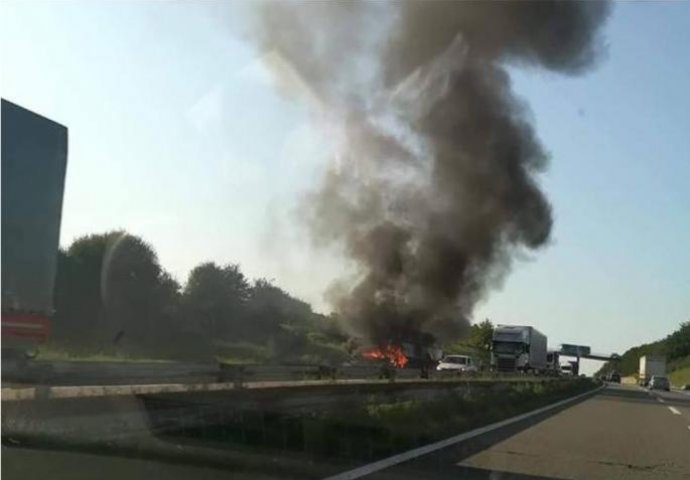 UŽAS NA AUTOPUTU U SRBIJI: Zapalio se autobus, ljudi u panici bježe!