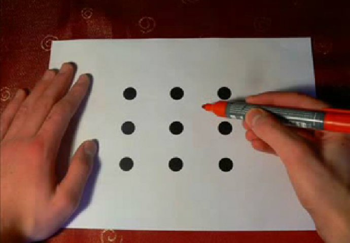 Fenomenalna, a ipak jednostavna igra okupirala je pažnju hiljadama ljudi. Ček', jesmo li rekli jednostavna?! Ma kako da ne. Svaki deseti čovjek uspije spojiti ovih 9 tačaka u 4 poteza, a samo genijalci u tri.
