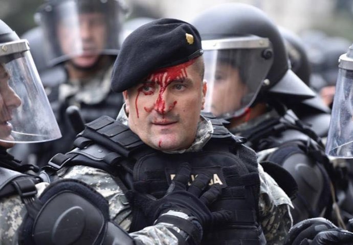 Društvenim mrežama jučer je kružila fotografija povrijeđenog policajca koja je izazvala gnjev javnosti.