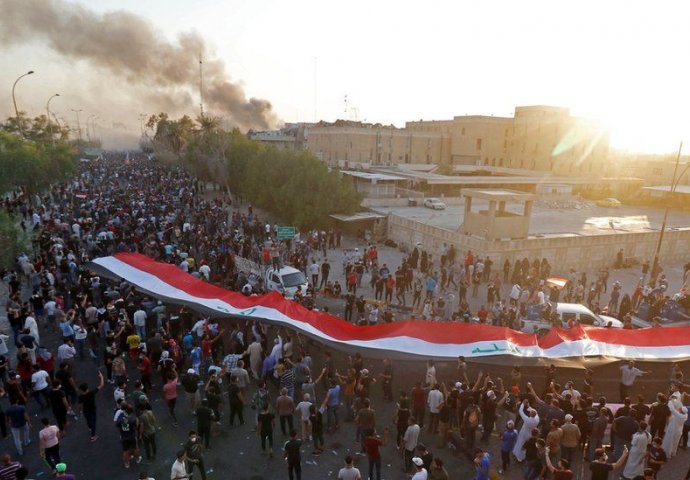 Prosvjednici su u petak napali i zapalili iranski konzulat u južnom iračkom gradu Basri, iskazavši bijes prema moćnom iračkom susjedu nakon pet dana smrtonosnih prosvjeda tijekom kojih su pljačkane i paljene zgrade vlade.