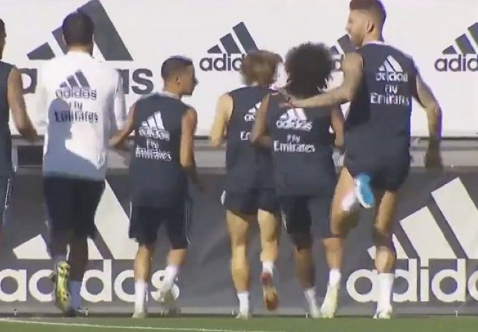 I dok su Modriću svi čestitali prije treninga, kada je krenulo vježbanje više nije bilo divljenja i popusta za prvu zvijezdu ekipe. Kamere su i dalje zumirale najboljeg nogometaša svijeta pa su tako uhvatile i situaciju kada je Marcelo nagovorio Lucasa da smjeste Modriću.