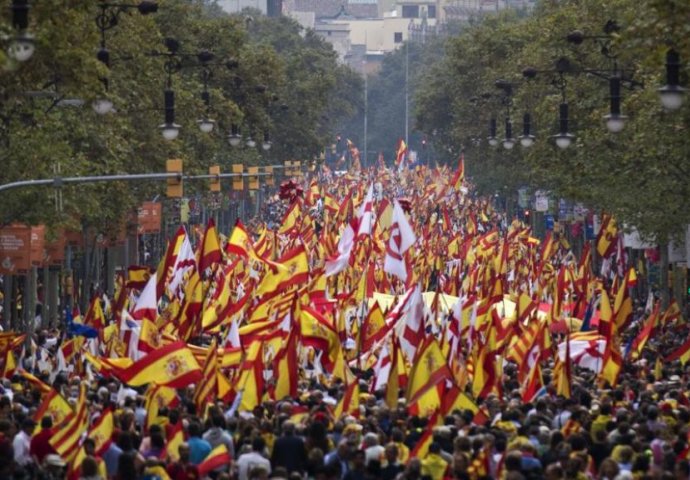 Izvikujući slogane "Svi smo mi Španjolska", unionistički prosvjednici su, prolazeći gradskim središtem koje je obično puno turista, mahali zastavama Španjolske, Katalonije i Europske unije. Nosili su transparente s kritikama separatističkog vođe i regionalnog predsjednika Quima Torre i bivšeg čelnika Carlesa Puigdemonta, koji je sada u samonametnutom egzilu u Belgiji.