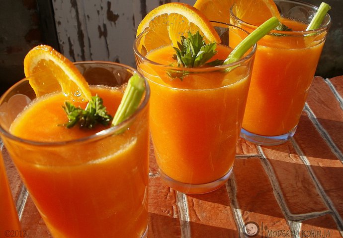 Naranče oguliti pa samljeti na mašini za meso. Limun također oguliti pa samljeti na mašini za meso. Mrkvu očistiti i naribati. Sve sastojke pomiješati, preliti vodom i ostaviti po noći. Sljedeći dan procijediti i na svaki litar soka dodati 1 kg šećera. Uliti u boce i zatvoriti celofanom. Sok konzumirati razrijeđen vodom.