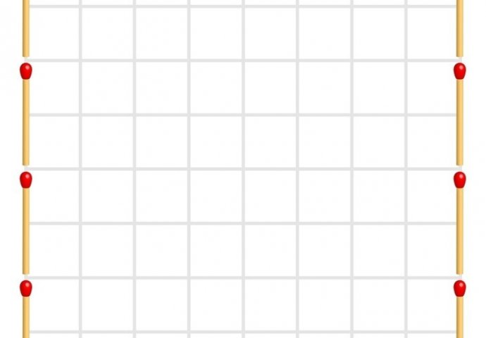 Dodajte 15 šibica na sliku kako biste dobili 4 polja jednake veličine. Ne možete da lomite šibice.