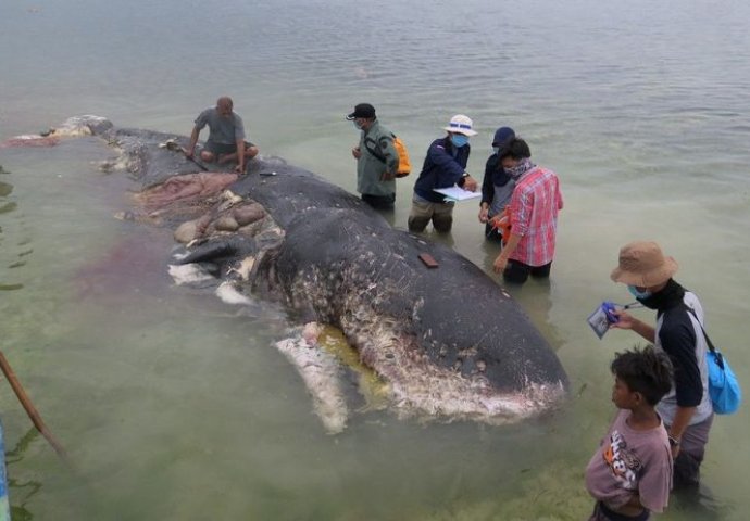 Kit koji se nasukao na plažu u istočnoj Indoneziji u svojoj utrobi imao je više od hiljadu komada razne plastike među kojima su bile i plastične čaše i japanke.