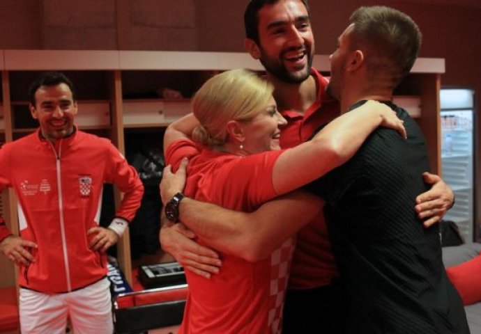 Predsjednica Republike Kolinda Grabar-Kitarović, neposredno nakon poraza od Francuza u igri parova, došla je u svlačionicu hrvatskih tenisera i podsjetila na svoje najsjajnije trenutke sa Svjetskog prvenstva u Rusiji, prenosi portal "Net.hr".