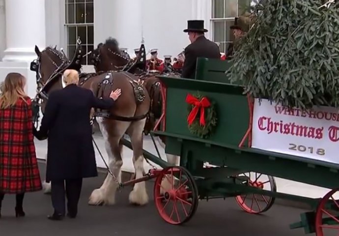 Naime, on i prva dama Melanija Tramp su snimljeni kako pozdravljaju kočijaše koji su im dovezali jelku koju će okititi za Božić.