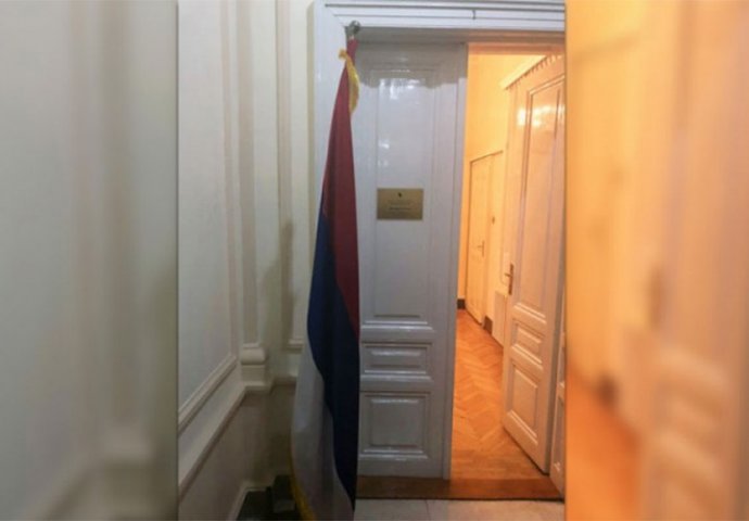 Zastava Republike Srpske prvi put je postavljena ispred kabineta u petak, ali je u večernjim časovima uklonjena na zahtjev kabineta bošnjačkog člana Predsjedništva BiH Šefika Džaferovića.