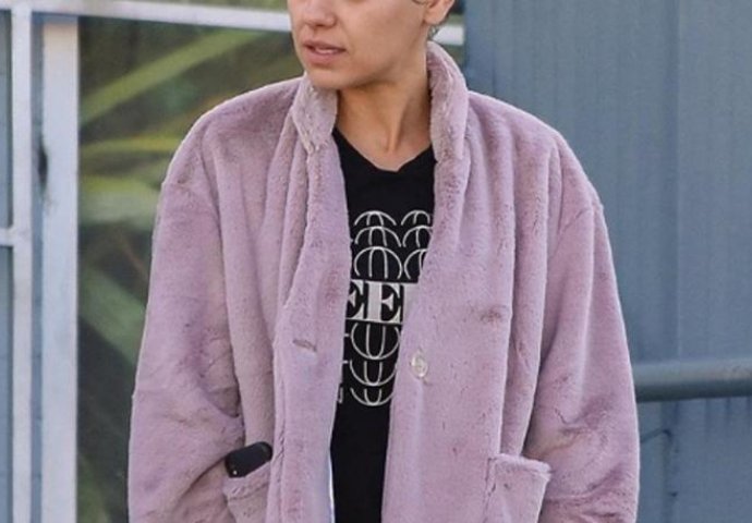 Kosu je vezala u visok konjski rep, obukla široke "boyfriend" pantalone, običnu crnu majicu sa aplikacijom i uz sve to iskombinovala bundicu.