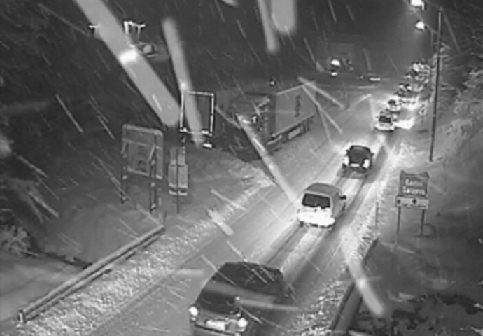 Nekoliko kamiona je zaglavljeno u snijegu te ne mogu nastaviti dalje, u oba smjera je saobraćaj obustavljen. Policija i grtalice su na terenu.