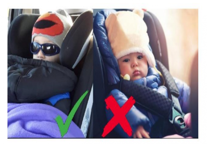 Preporuka stručnjaka je da se djeca u zimskom danima obuku u više tanjih slojeva,a ukoliko je baš hladno da se jaknom ili dekicom pokriju preko autosjedalice.