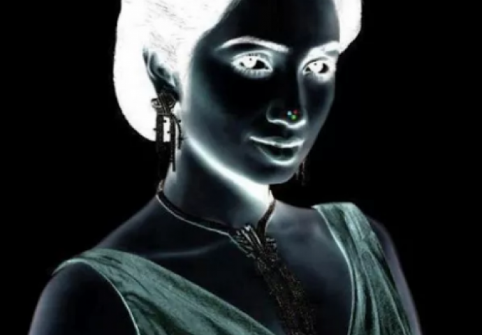 Gledajte u crvenu tačku na nosu djevojke oko 30 sekundi. Onda pogledajte u zid, plafon ili drugu jednako obojenu površinu i brzo trepćite.
