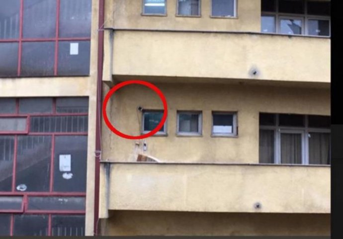 Naime, na slici se jasno vidi kako sa vanjske strane studentskog doma, u dijelu gdje je kupatilo, za vrh prozora ženskog toaleta i tuš kabine stoji mobilni telefon.