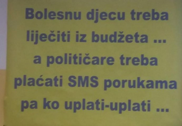 U Tuzli je danas započela akcija "Djecu treba liječitii iz budžeta, a političare plaćati SMS porukama, pa ko uplati-uplati", koju realizuje neformalna grupa roditelja.