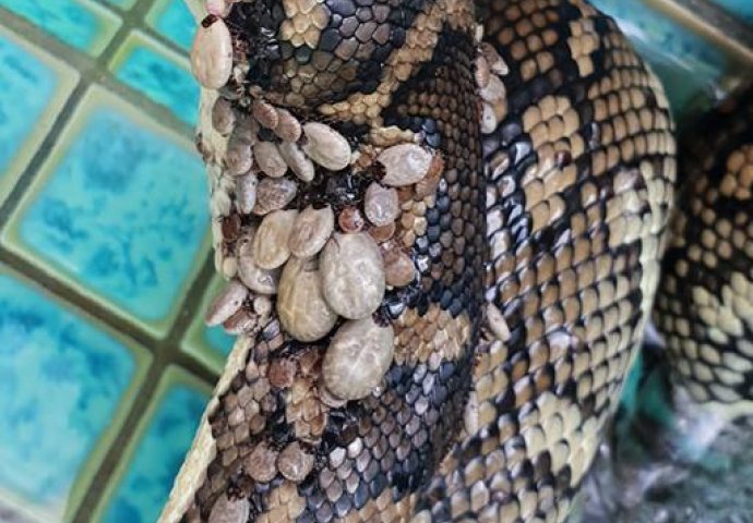 Kada su uhvatili golemu zmiju, odmah su je odvezli kod veterinara koji su s nje uklonili čak 513 krpelja.