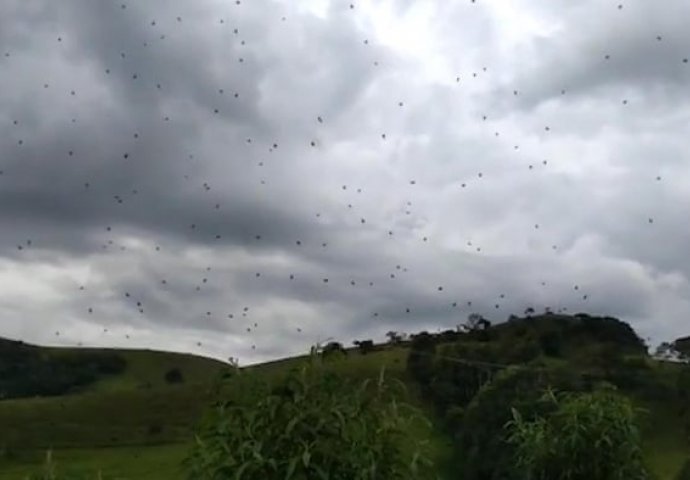 Naime, na snimku je prikazano kako pauci doslovno padaju s neba.
