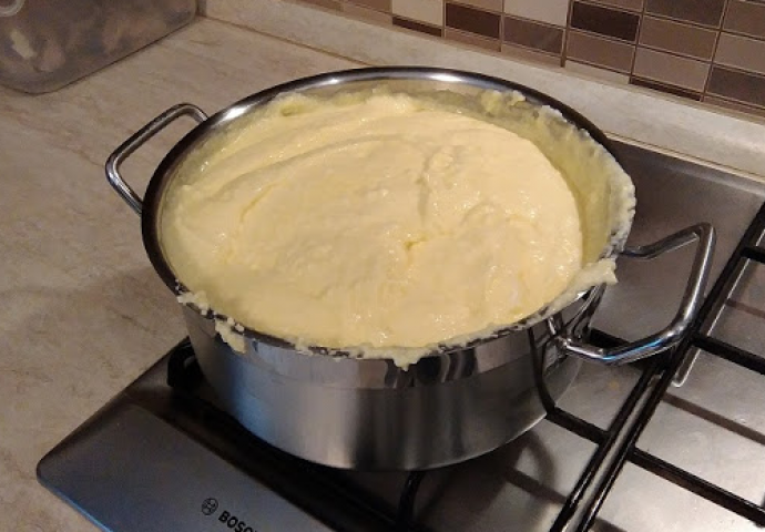 Maknuti s vatre i dok se hladi često promiješati da se po vrhu ne uhvati kožica, ili prekriti prozirnom folijom.