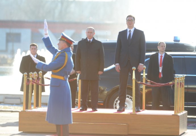 Vučić je za ruskog predsjednika priredip svečani doček ispred Palate Srbija, uz 10 počasnih plotuna, intoniranje himne dvje države i smotru počasne garde.