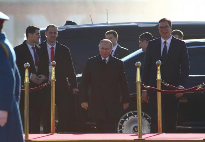 Predsjednik Rusije Vladimir Putin prilikom jučerašnje posjete Srbiji nosio je ljubičastu kravatu, dok je predsjednik Srbije Aleksandar Vučić nosio kravatu plave boje.