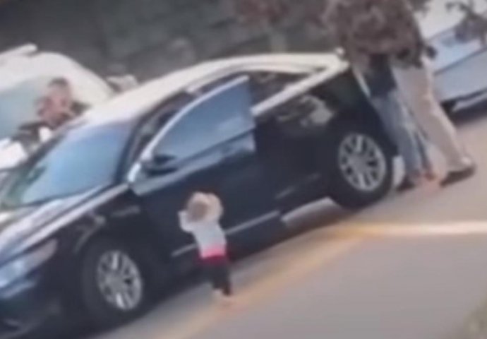 Prolaznici su snimili dio hapšenja. Pošto je muškarac došao do policijskog automobila, uslijedio je dio koji je mnoge šokirao. Dvogodišnja djevojčica se jedva spustila iz automobila i krenula prema policajcima.