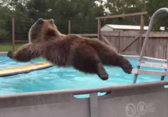 Bruiser je četvorogodišnji grizli koji uživa u brčkanju i skokovima u bazen.