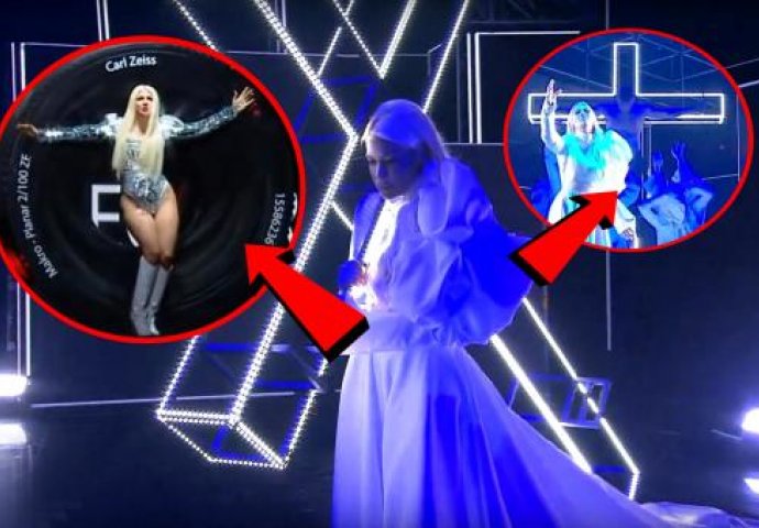 S druge strane, Jelena je ovo prvi nastup nakon skandala, pa je tako simbolično bila raspeta na objektiv kamere, ukazujući na njeno medijsko raspeće...