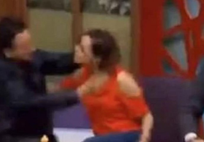 Voditeljica se svim silama trudila da izbjegne poljubac, a u jednom trenutku je skoro pala sa stolice.