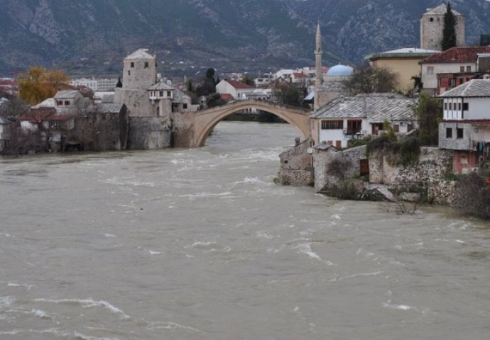 Rijeka Radobolja je u porastu kao i Neretva, a područje oko Starog mosta koje je također bilo pod vodom nije umanjilo interes turista za fotografiranje ispod UNESCO-ovog zaštićenog i nadaleko poznatog spomenika.