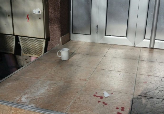 Na licu mjesta su obilni tragovi krvi koji ukazuju da se ispred zgrade dogodio užas.