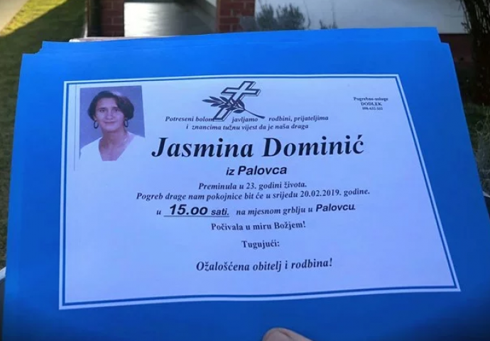 Objavljena je osmrtnica Jasmine Dominić, čije je tijelo 19 godina nakon što je nestala prije nekoliko dana pronađeno u zamrzivaču obiteljske kuće u međumurskom mjestu Palovcu.