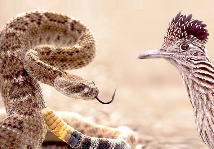 Zvečarka je jedna od najopasnijih zmija svijeta, a upravo se ona susrela sa jednom od ptica u američkoj pustinji.