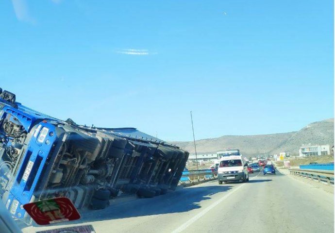 Snažan vjetar načinio je sinoć i jutros štetu u Mostaru, a usljed snažnih udara - došlo je prevrtanja kamiona na mostu u naselju Rodoč.