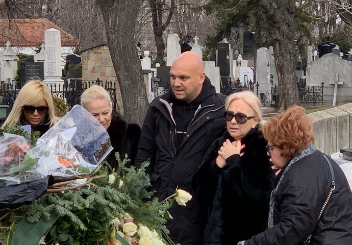 Goca Šaulić je sve vrijeme plakala, dok ju je sin tešio, a Ilda je čučnula pored očevog groba sa maramicom u ruci, takođe u suzama i uhvatila se za srce.