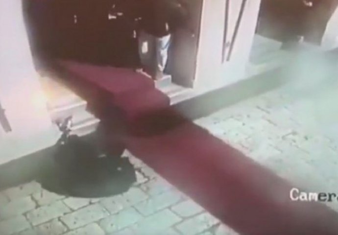 Sve se događalo ispred jednog restorana, a snimka nadzorne kamere zabilježila je trenutak udarca.