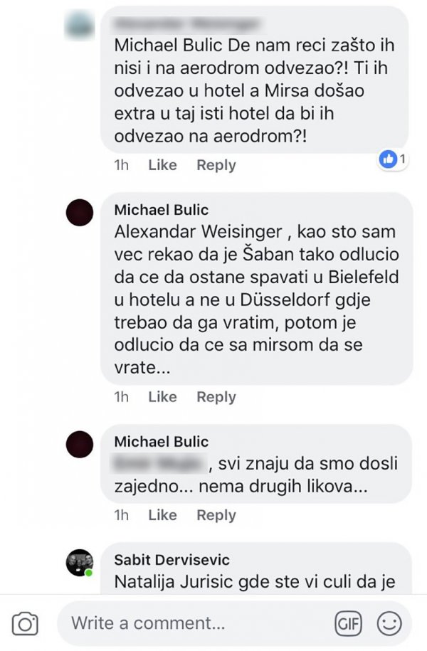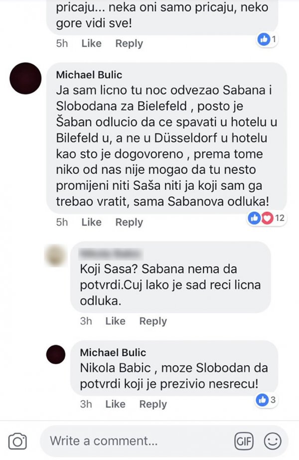 - Ja sam lično tu noć odvezao Šabana i Slobodana za Bilefeld, pošto je Šaban odlučio da če spavati u hotelu u Bilefeldu, a ne u Dizeldorfu u hotelu kao što je dogovoreno. Prema tome, niko od nas nije mogao da tu nešto promijeni, niti Saša (Sabit Dervišević prim. aut), niti ja koji sam ga trebao vratiti. Sama Šabanova odluka! - napisano je u komentaru.