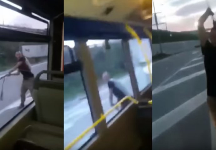 Podivljali muškarac zaustavio je vozilo i počeo da razbija stakla i udara po limu autobusu. Mladić je u jednom trenutku nakon što je razbio vjetrobransko staklo ušao u autobus, a onda ponovo izašao i nastavio s razbijanjem.
