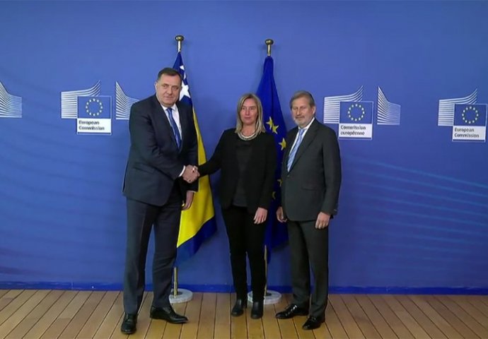 Uručenju odgovora na dodatna pitanja iz Upitnika prethodio je sastanak Dodika sa Hahnom i visokom predstavnicom Evropske unije za spoljne poslove i bezbjednosnu politiku Federicom Mogherini.