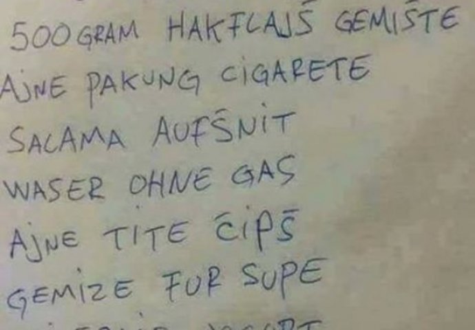 Kažu da hljeb nije ukusan kada nisi u svojoj zemlji, ali se ipak mora jesti i ići u kupovinu. Za nabavku treba napraviti i spisak, a ovako to izgleda kada ga napravi jedan Bosanac u Njemačkoj, čije ime nije poznato.