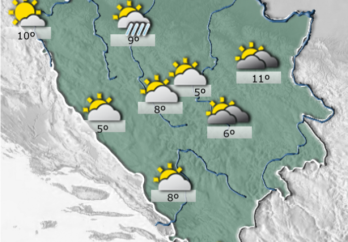 U Sarajevu prije podne oblačno. Kiša će padati u jutarnjim satima. U drugoj polovini dana smanjenje oblačnosti. Najniža jutarnja temperatura zraka oko 6°C, a najviša dnevna temperatura zraka oko 16°C.