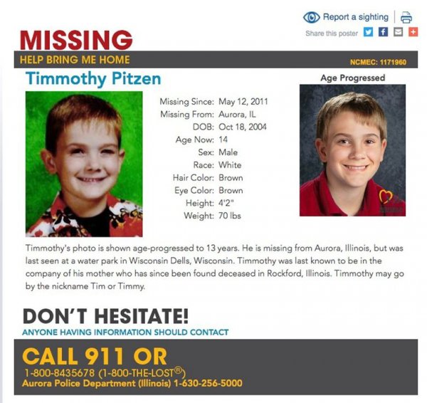 Timmothy je zadnji put viđen kada je po njega u školu u zapadnom predgrađu Chicaga Aurori došla majka, koja je ubrzo nakon toga počinila samoubojstvo.