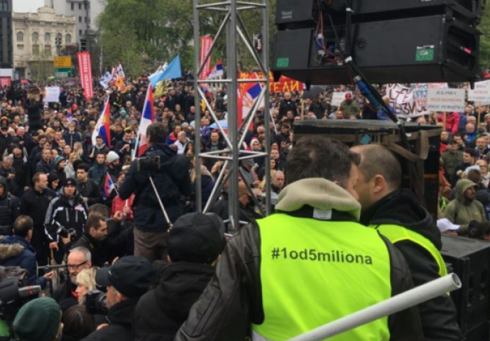 U Beogradu su danas održani protesti opozicije "Svi kao jedan – 1 od 5 miliona" ispred Skupštine Srbije. Predstavnici Saveza za Srbiju pročitali su zahtjeve ujedinjene opozicije i predstavili plan kako će dalje djelovati.