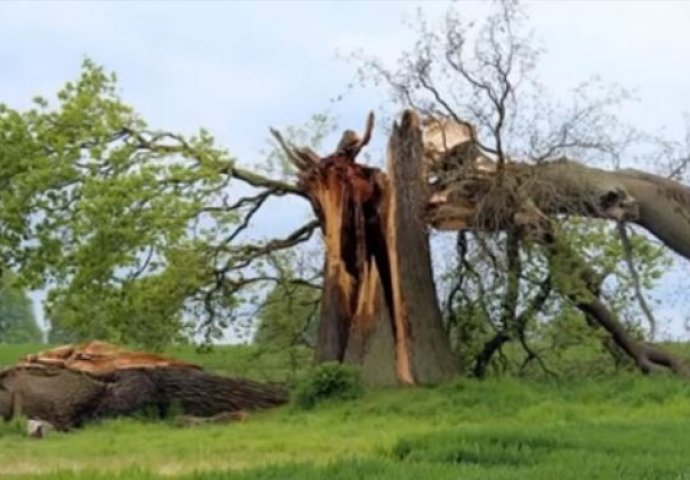 Naime, tijekom nevremena, grom je udario u stari hrast, poslije čega je u dvorištu odjeknuo prasak.