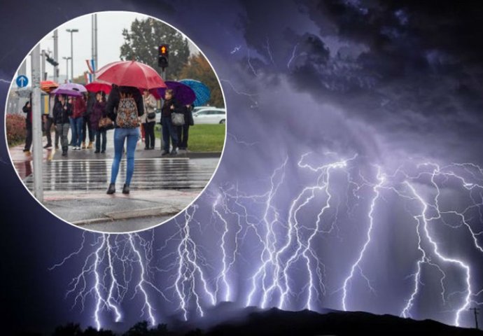 PRIPREMITE SE! Stiže žestoko nevrijeme: Olujni udari vjetra nose sve pred sobom, ceste pod vodom, grad zahvatila jaka grmljavina, a najgore tek dolazi
