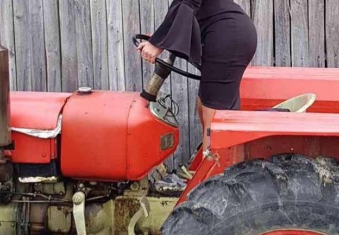Grabovićeva je ovoga puta objavila fotografiju na Instagramu na kojoj se vidi kako stoji na traktoru, a njena zadnjica je u prvom planu.