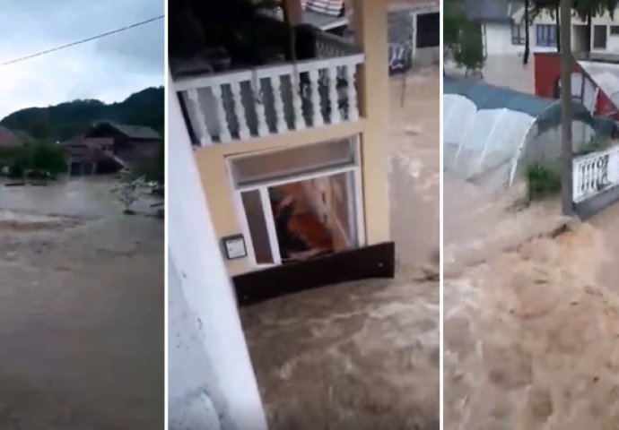 Dramatični snimci poplava u BiH: VODA NOSI SVE PRED SOBOM, ljudi zarobljeni u domovima